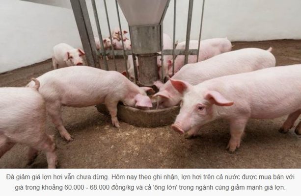 Hôm nay theo ghi nhận, lợn hơi trên cả nước được mua bán với giá trong khoảng 60.000 – 68.000 đồng/kg và cả ‘ông lớn’ trong ngành cùng giảm mạnh giá lợn.